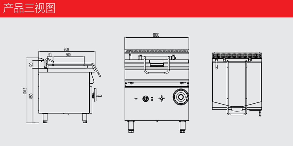 • 锅体具有可倾翻转功能,锅起自动断电,自带水龙头注水功能。