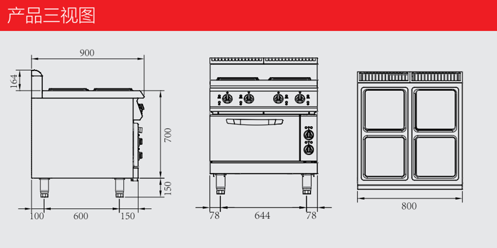 电四头煮食炉连柜方头